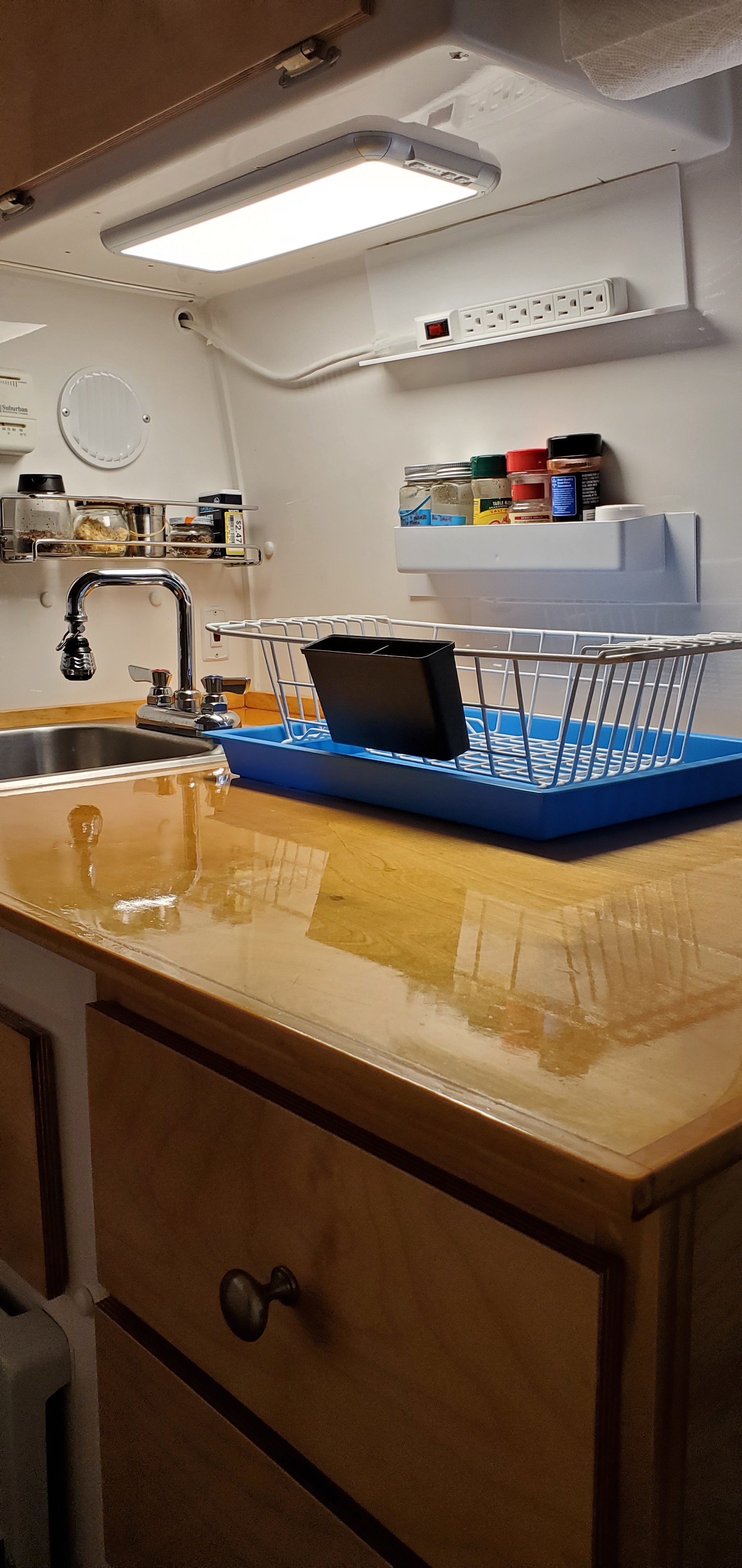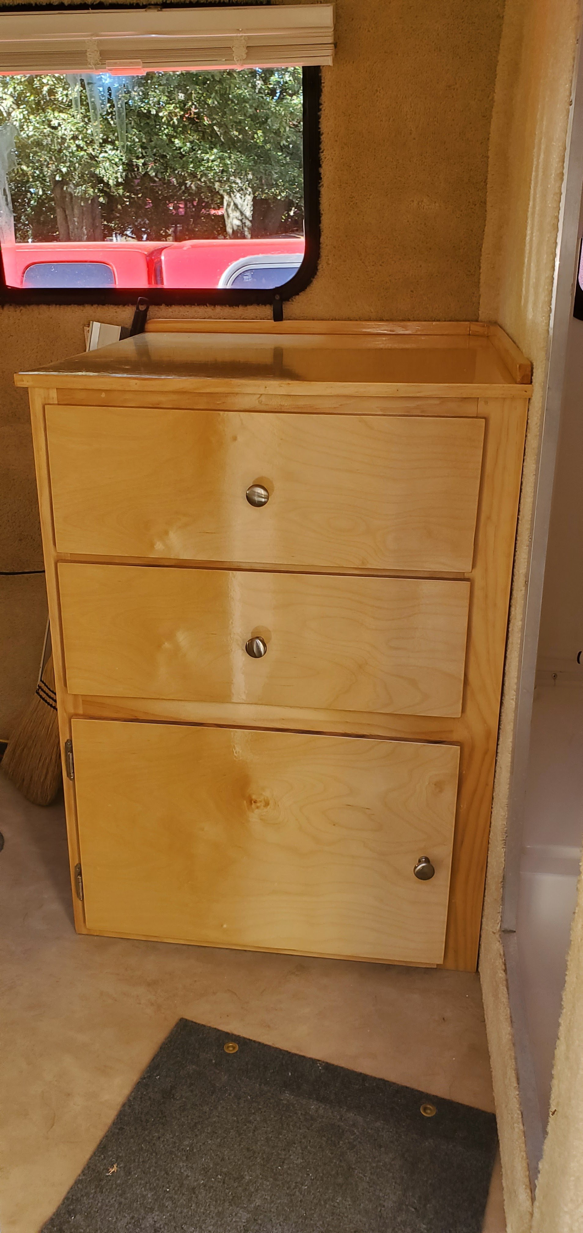 All doors and drawers redone in 7ply Cabinet Grade Birch plywood with new push button locks, crome knobs/handles added as needed. Build uses existing structure and all electrical from oem Casita build. In keeping with diagrams and manuals. Simple but clearly helpful.