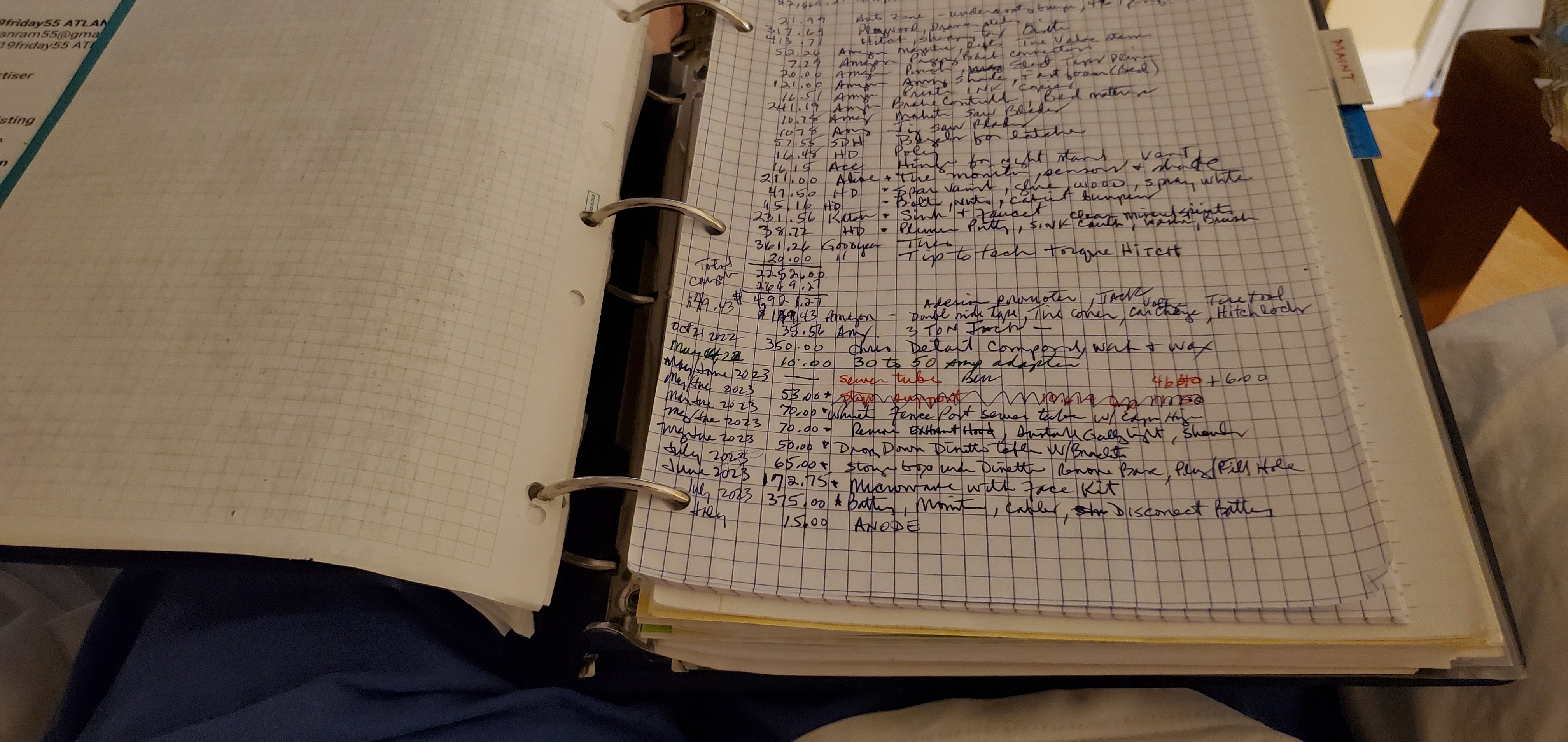 Large maint book with receipts since new. Maint, repairs,build details