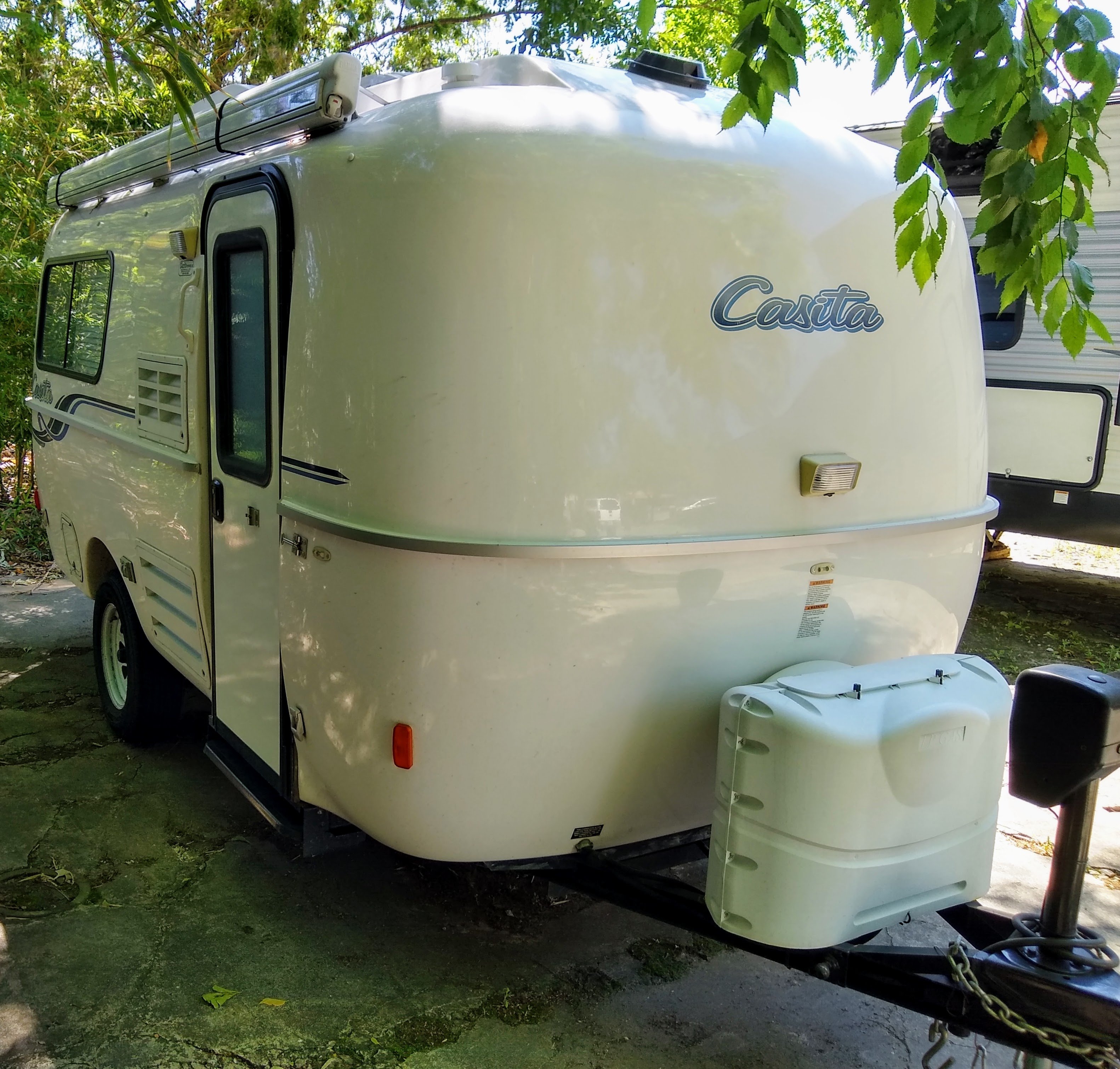Our 17' Casita Travel Trailer, licensed in Texas, is currently in southern Arizona. It is in excellent condition and has many factory options. At the moment it is in the shop getting its annual checkup plus getting its wheel bearings packed, ready to take another trip to Nova Scotia However, we've just decided that, in our late eighties, it is time to experiment with other lifestyles.